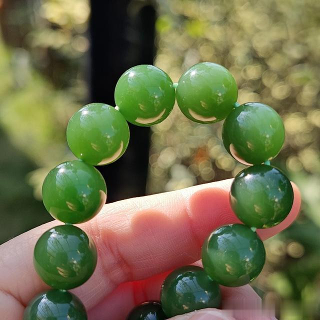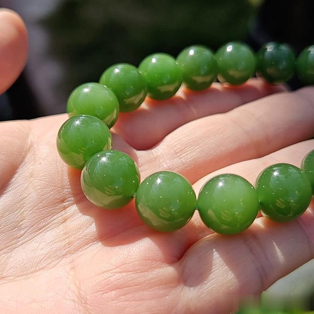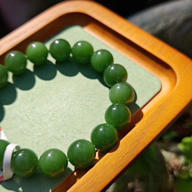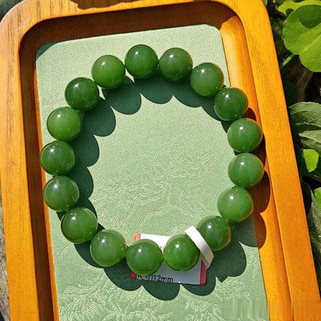 我很少称赞碧玉,但这个月有两件高品。一件冰底起莹佛公,一件便是今天要给大家分享的七号坑老料满绿碧玉手串。